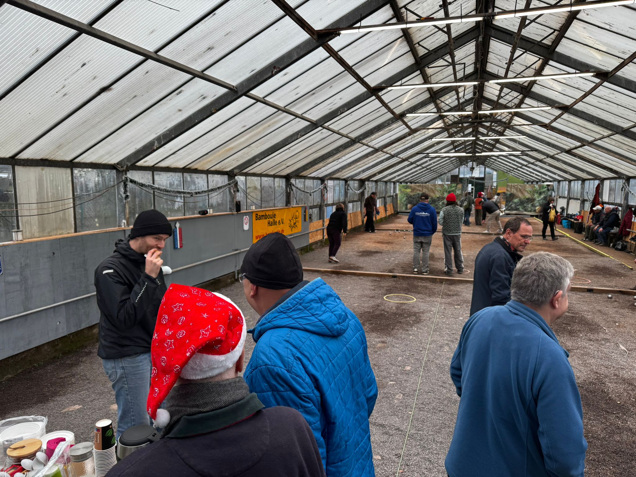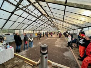 Am 15.11.25 fand die Große Eröffnung unseres Glashauses statt. Mit 16 Tripletten waren unsere Kapazitäten voll ausgeschöpft. Das Wetter war mies, Nieselregen, alles grau in grau, aber Egal! Wir haben ja jetzt ein Dach über dem Kopf, so fanden sich auch alle 48 Teilnehmer vollzählig ein.