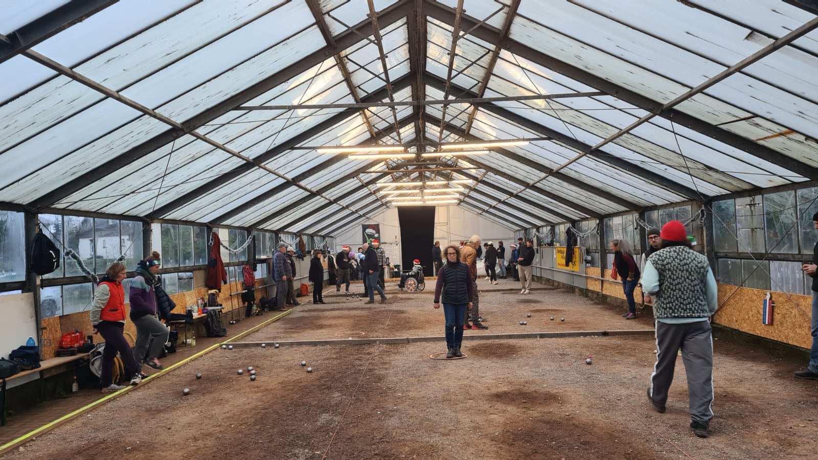 Zu Helloween startete der Spielbetrieb in unserem neuen Domicil. Vierzig Boulist*innen aus der Region kamen um den Hallenboden zu testen. Und sie waren nich nur aus der Nachbarstadt Leipzig, sonden auch aus Schönebeck, Dessau-Roßlau, Jena und Weimar angereist. Damit wurde die Platzkapazität von 8 Spielfeldern fast ausgereizt.