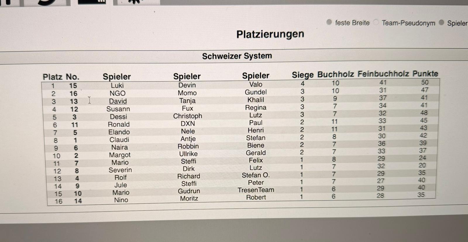 Heute fanden sich 15 Team´s in unserem Glashaus ein, wir konnten wieder Spieler ausLeipzig, Weimar, Schöneberg, Chemnitz und sogar München begrüßen.